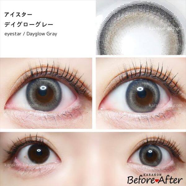 普段使いもしやすいグレー系の水光カラコン。